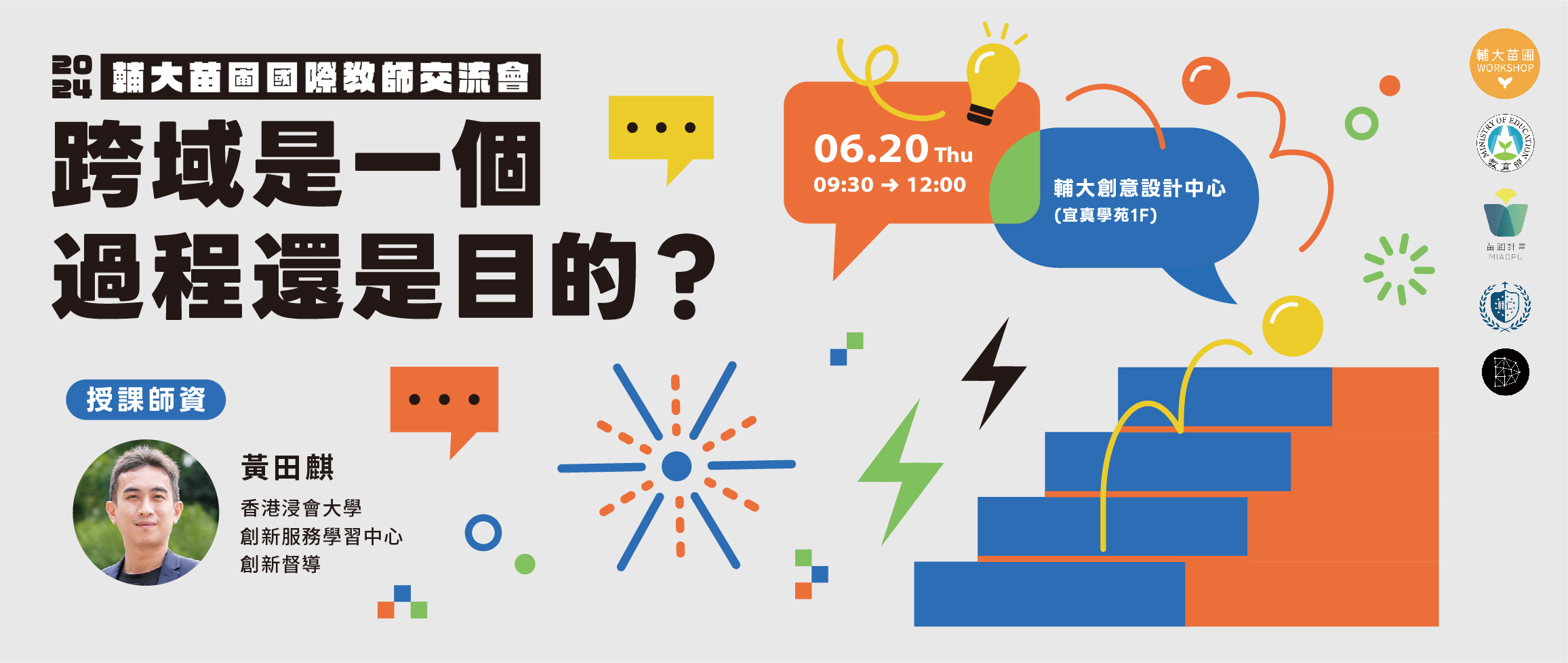 輔大苗圃本次邀請到香港浸會大學 黃田麒老師,分享其跨領域合作的教學、課程設計、產學合作等實際案例與經驗。歡迎師長們參與共融!相互交流學習 !在跨領域合作中激發更多的創意和可能性,為學生們帶來豐富多元的學習體驗!